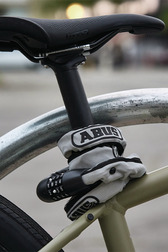 Die hochwertige Textilummantelung schützt den Fahrradrahmen effektiv vor Kratzern und Beschädigungen. Gleichzeitig sorgt sie dafür, dass das Schloss angenehm in der Hand liegt und sich leicht um Rahmen und Fahrradständer legen lässt.