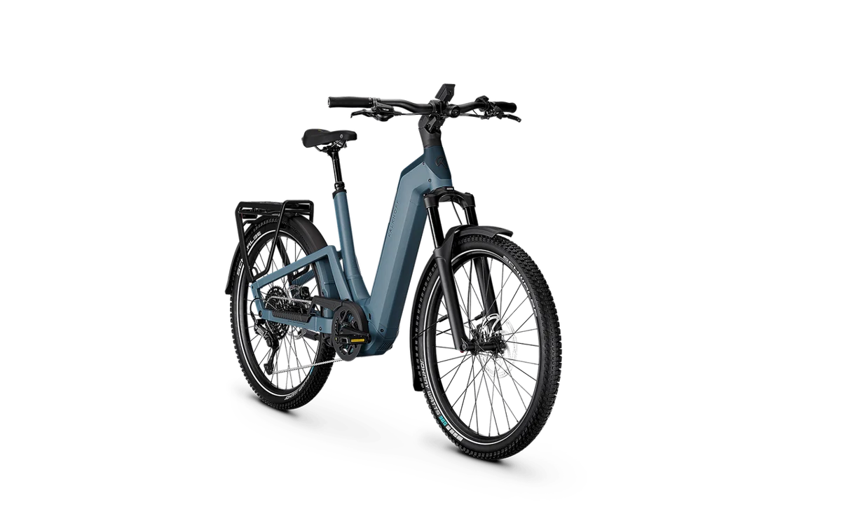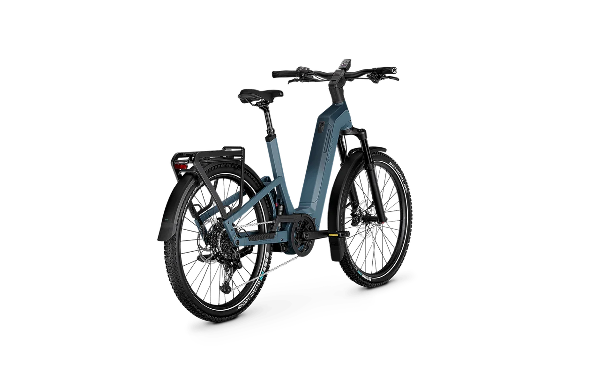 Die Farbgebung duskblue matt verleiht dem E-Bike eine elegante und sportliche Optik. Das hochwertige Design unterstreicht den robusten und vielseitigen Charakter dieses E-SUV-Bikes.