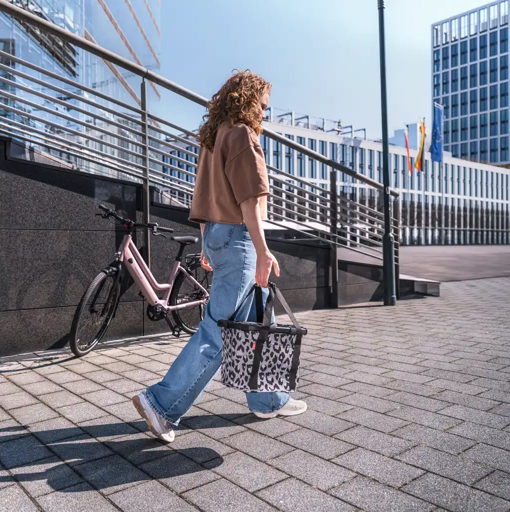 Das elegante Leo-Nero-Dekor verleiht dem Bikebasket eine moderne und zugleich zeitlose Optik. Er passt hervorragend zu City- und Trekkingrädern und setzt einen stilvollen Akzent am Fahrrad. Der Korb ist damit nicht nur ein praktisches Zubehör, sondern auch ein optisches Highlight für designorientierte Radfahrerinnen und Radfahrer.
