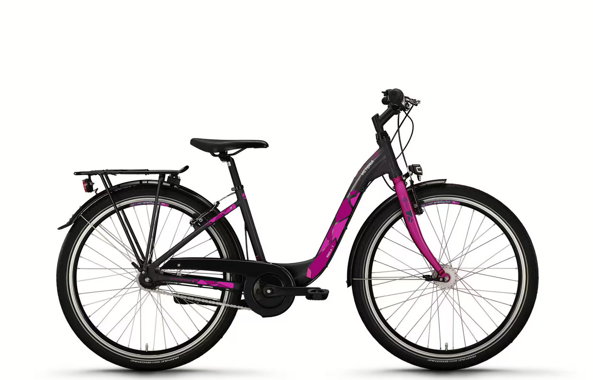 Der Wave-Rahmen erleichtert das Auf- und Absteigen deutlich und sorgt für ein Plus an Sicherheit im Alltag. Die aufrechte Sitzposition bietet eine gute Übersicht im Straßenverkehr und unterstützt ein entspanntes Fahrgefühl. Besonders im Schul- und Alltagsbetrieb ist diese Rahmenform sehr praktisch und beliebt.
